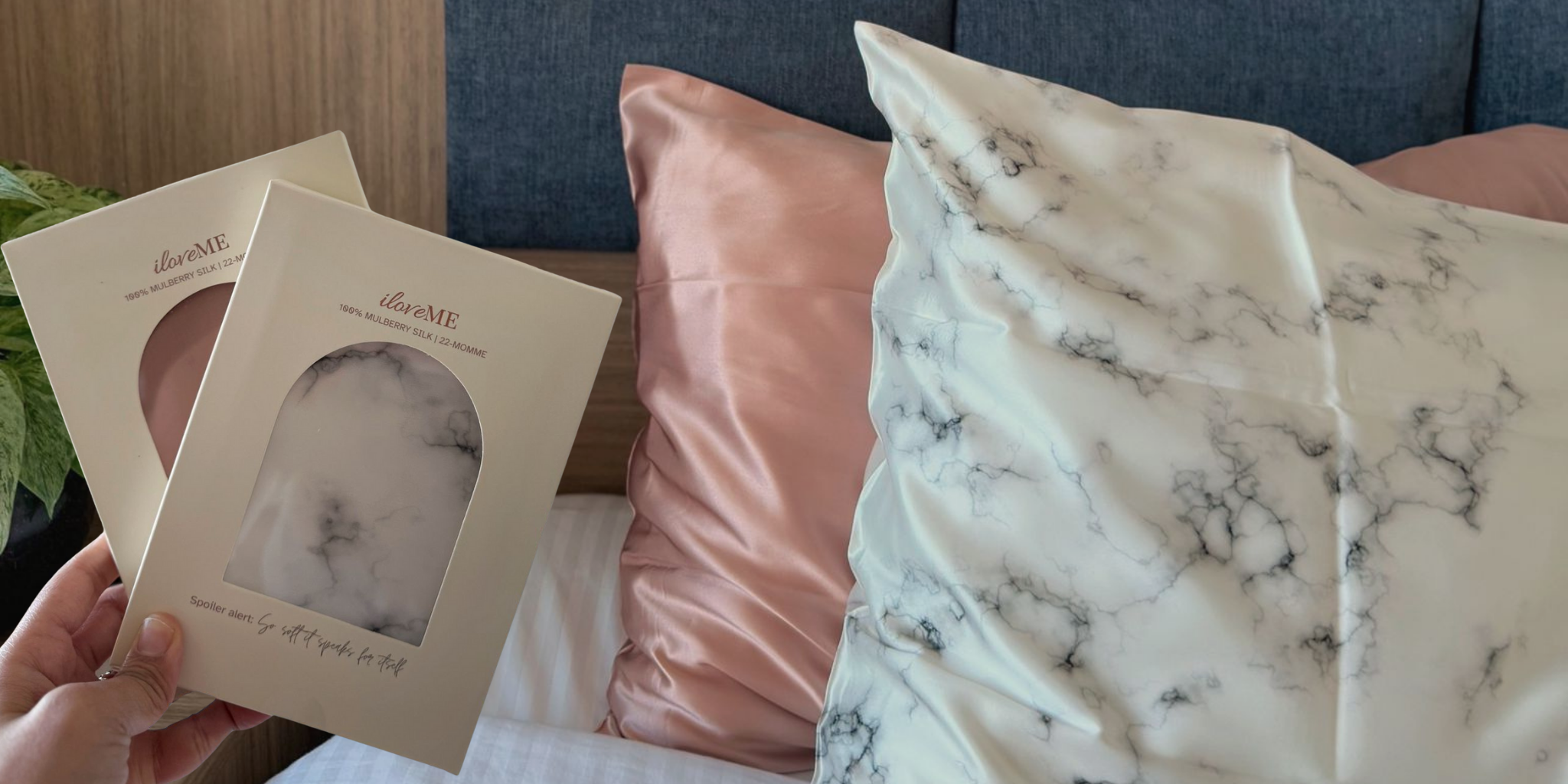 "Hey! My fiancé got me the silk pillowcases and another black mask this weekend. We’re both obsessed now! Also the frizz in my hair has calmed down immensely since I started using the original pink one you sent." - iloveME Customer, Qatar